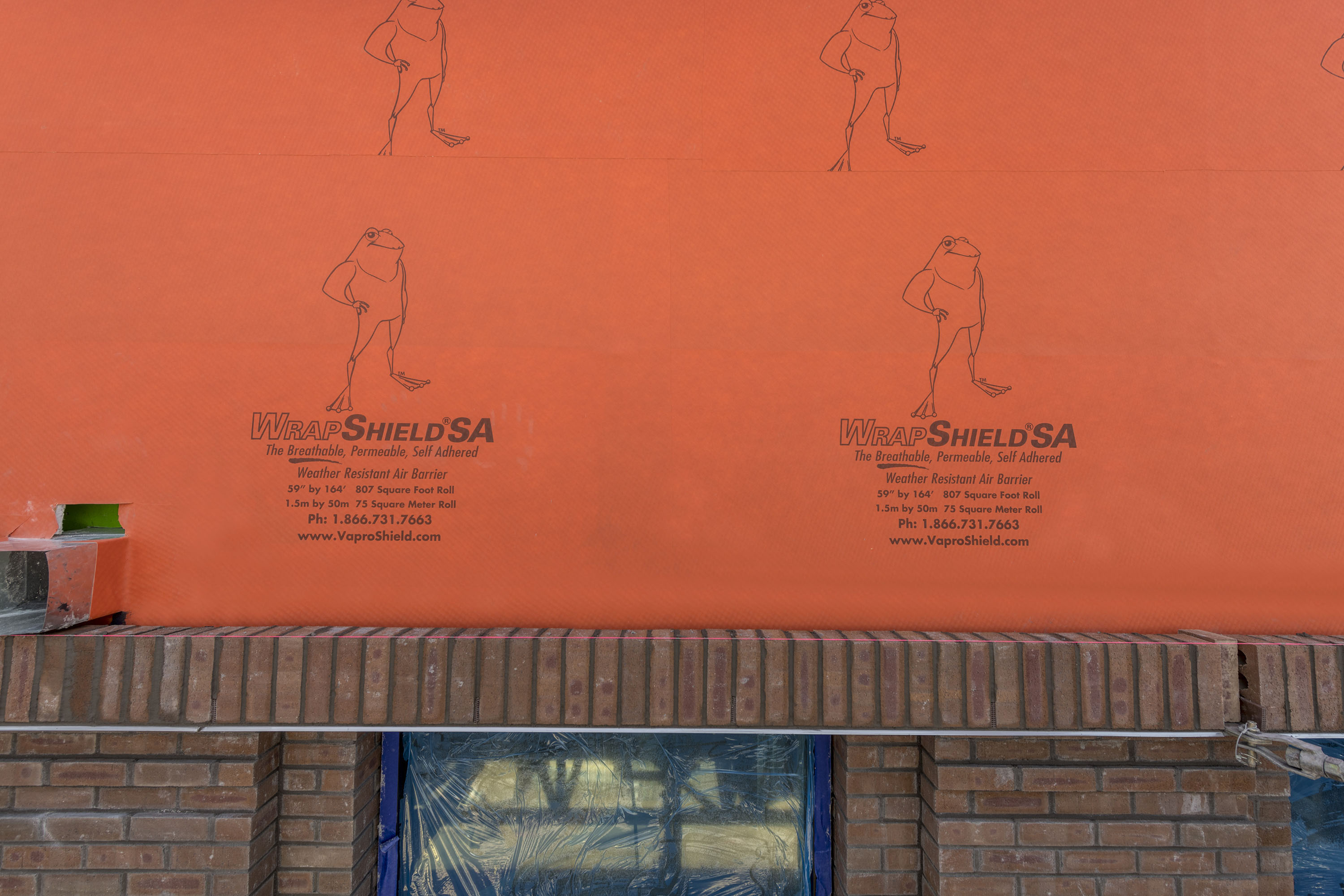 WrapShield SA Self-Adhered WRB/Air Barrier (orange) installed on The Lydian in Denver, Colorado.