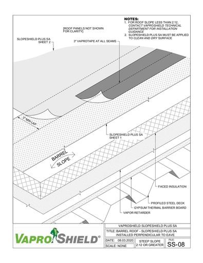 Steep Slope Barrel Roof SlopeShield Plus SA Installed Perpendicular to Eave
